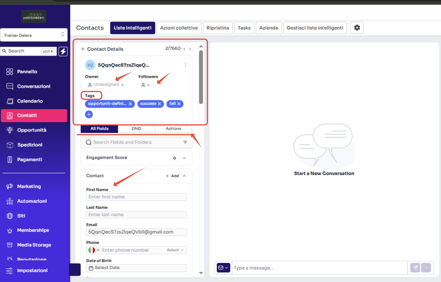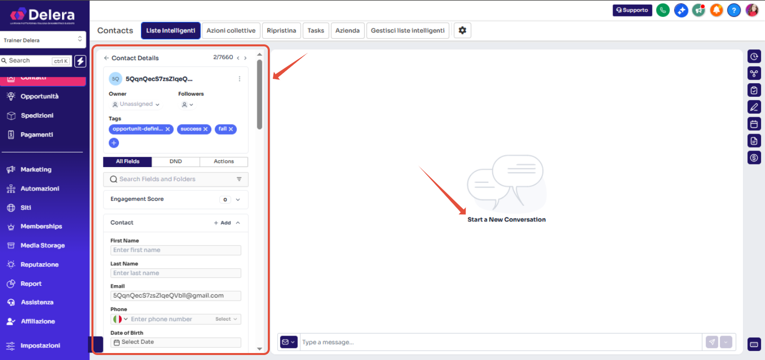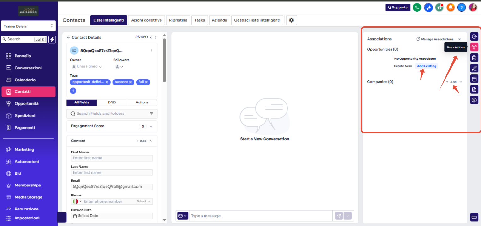 Nella nuova scheda puoi associare in tempo reale un contatto a: